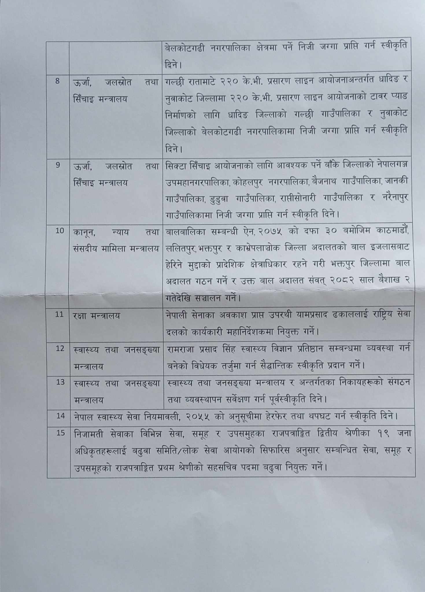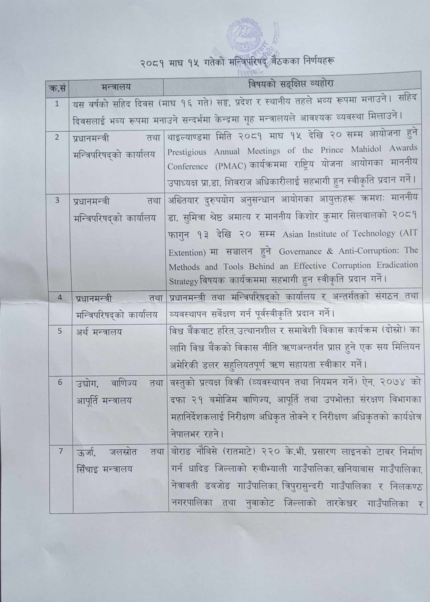 मन्त्रिपरिषद् बैठकका निर्णयहरु हेर्नुहोस् (सूचीसहित)